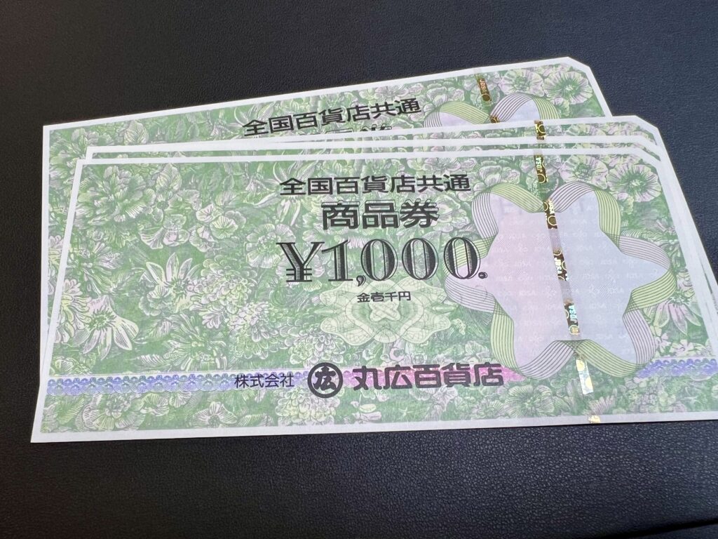 【2024年7月】所沢市のお客様から丸広(まるひろ)百貨店発券 全国百貨店共通商品券をお買取させていただきました。