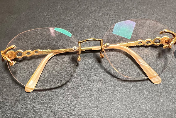 お買取をさせていただきました金縁メガネフレーム(K18,18金)は以前にご購入をされたそうです。長らくご愛用をしていたそうでしたが、ご使用機会が減ってしまったとのことでお買取相談にお越しいただきました。